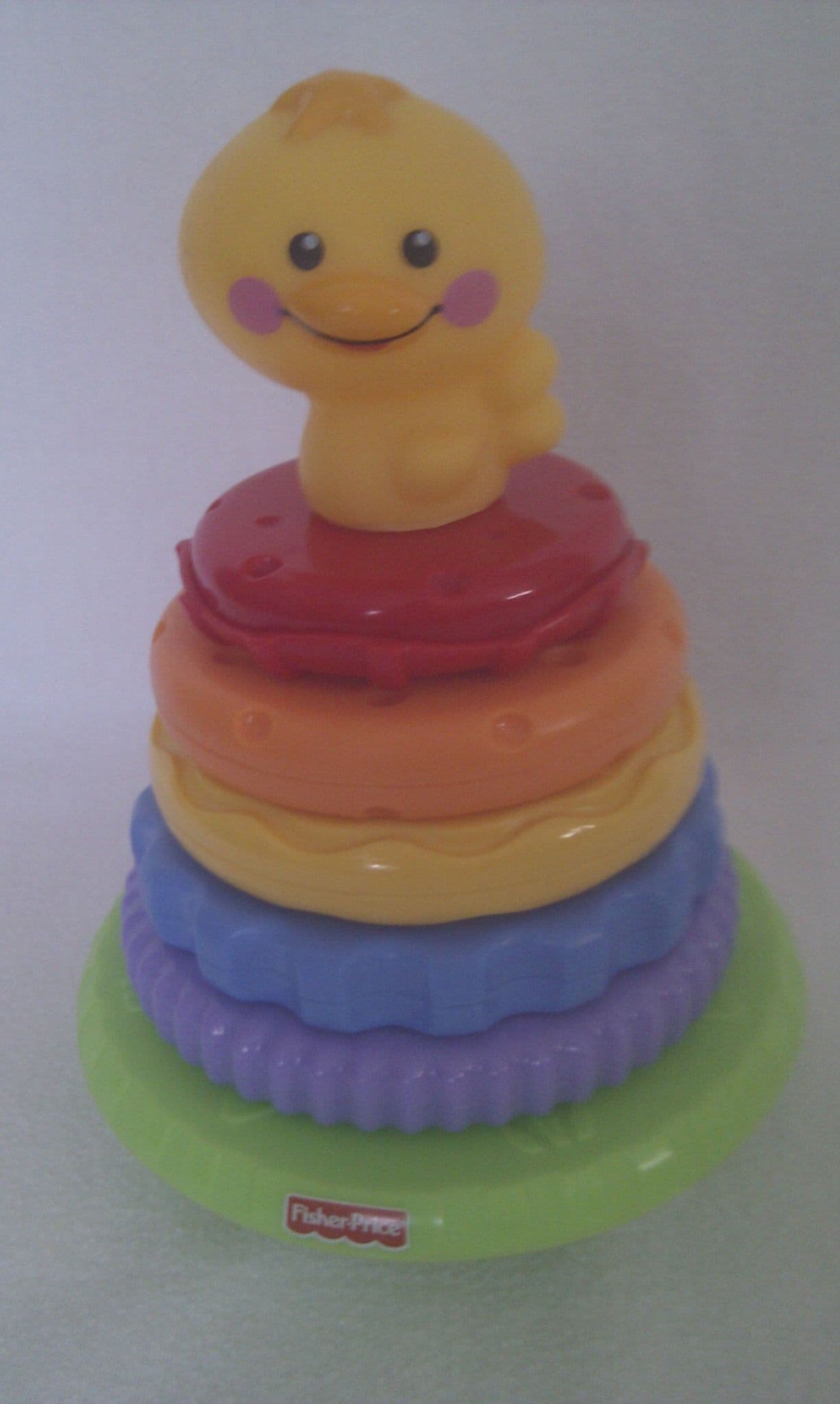 A delightful My 1st Baby 'Play & Stacking Baby Toy' with cute Rattle sound. Age: 6 to 36 months. This is a delightful My 1st Fisher Price Baby Play and Stacking Baby Toy. Brightly coloured with cute smiling duck on the top just perfect to stimulate a little baby and develop motor skills. The big chunky rings are great for a little one to hold easily. A little one will have lots of floor playtime fun stacking and then re-stacking the delightful rings which are all different colours and textures. For both indoor and outdoor play. So much fun!